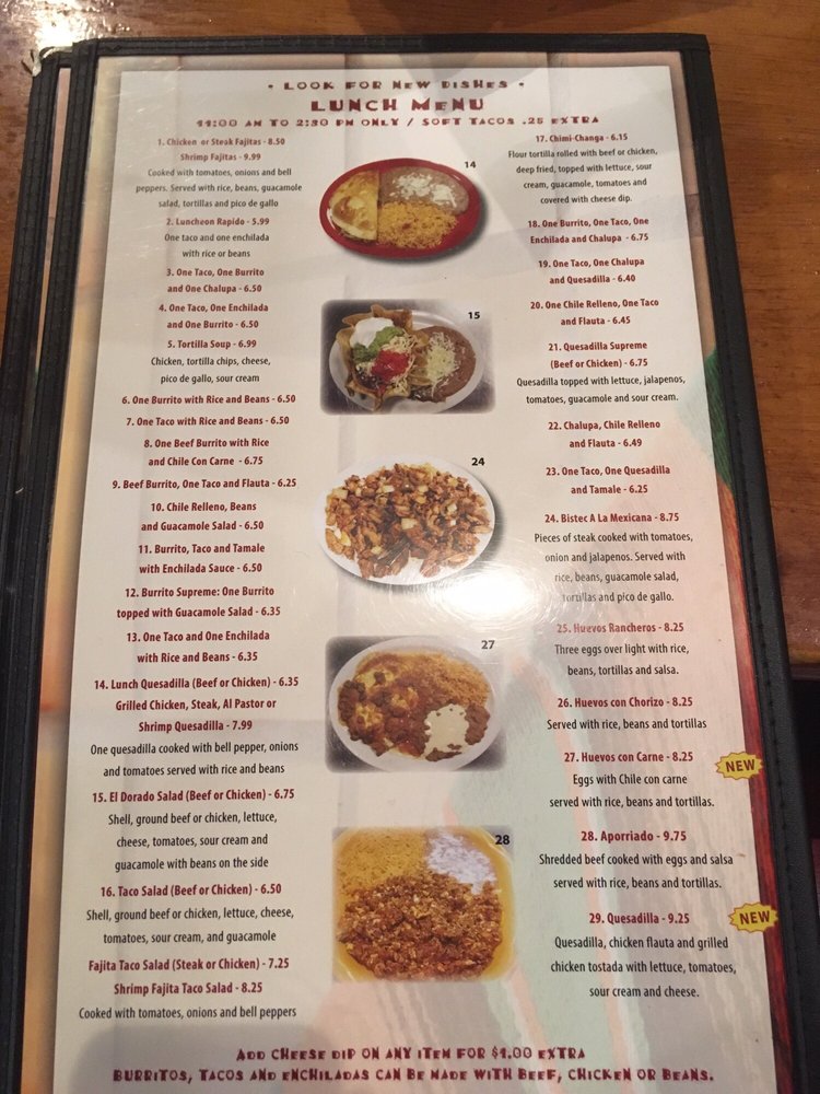 Welcome to El Dorado Mexican Restaurant, a vibrant gem nestled in the heart of Auburn, Alabama, at 1658 S College St. If you're seeking an authentic Mexican dining experience that embodies both flavor and hospitality, look no further. With its casual atmosphere and moderate noise level, El Dorado provides a welcoming space perfect for families, friends, and groups alike.
